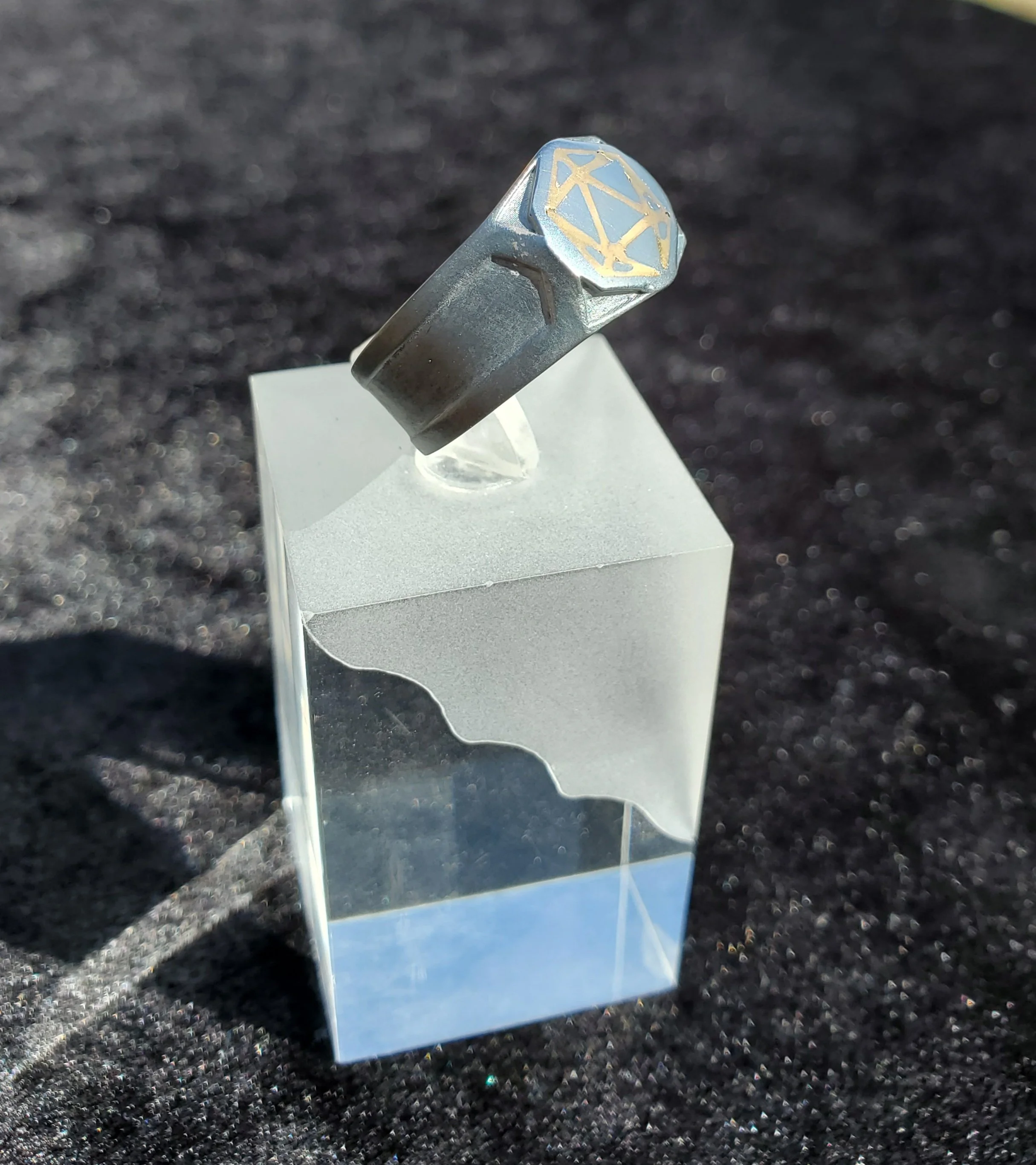 Blackened Silver with Gold D20 Inlay Ring